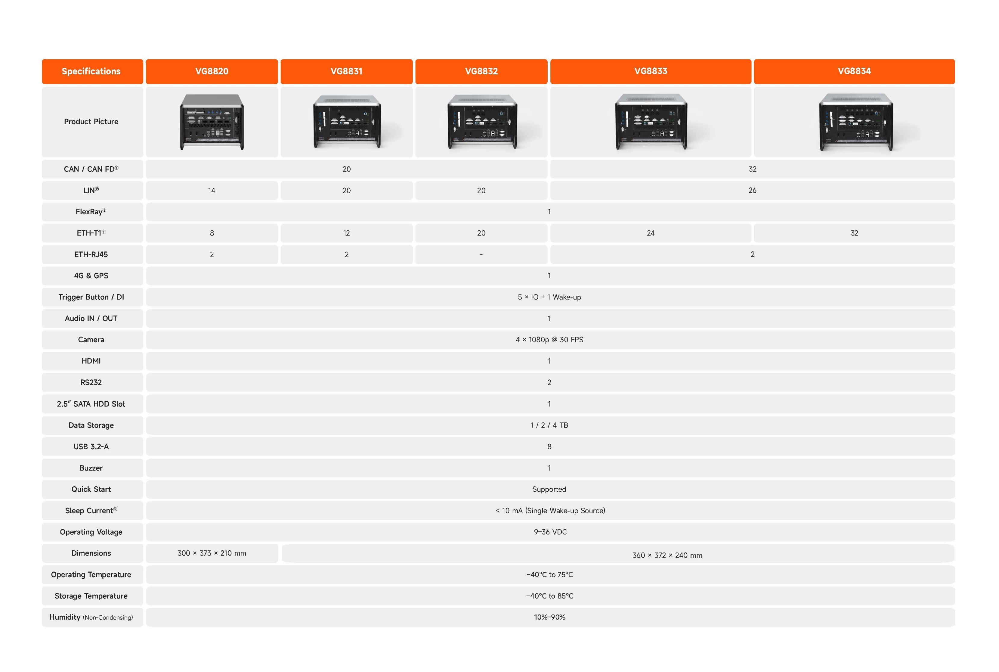 Operates reliably in temperatures from -40°C to 75°C and humidity from 10% to 90% (non-condensing). Designed for extreme environments such as high-altitude, high-temperature durability tests and off-road conditions—no additional protective equipment required.