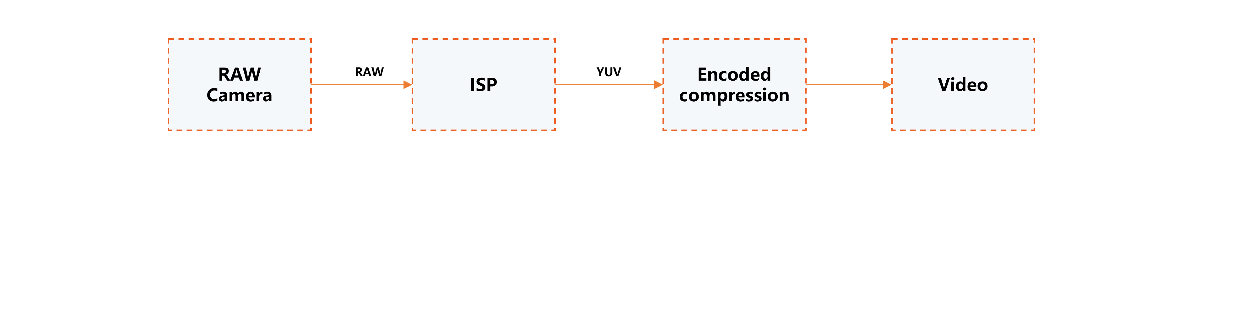 RAW image data is processed by ISP into YUV data, and then compressed and stored in standard video format by