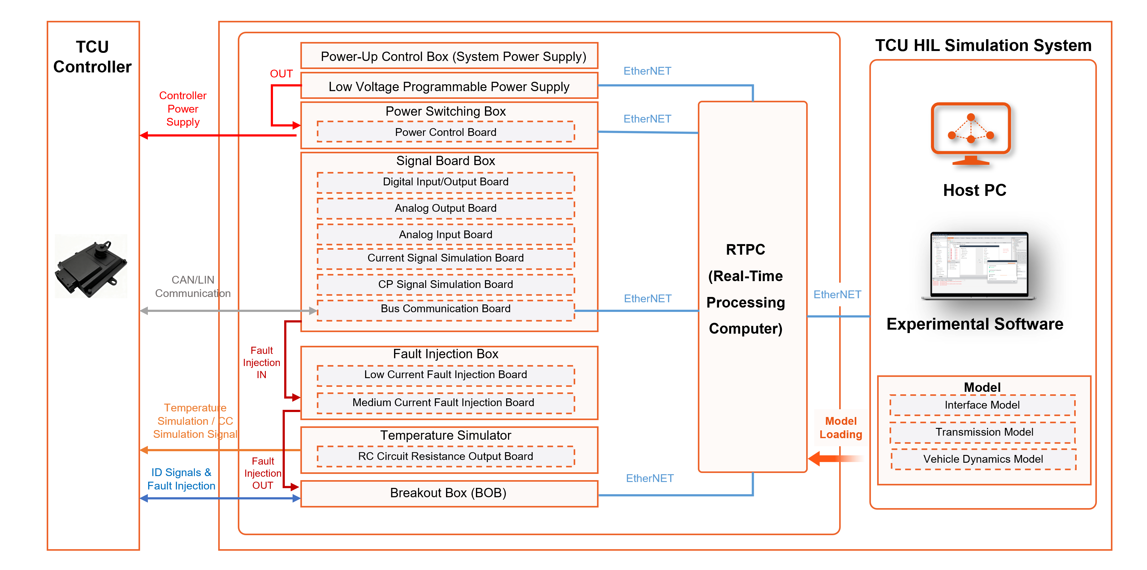 VCARSYSTEM's in-house developed Transmission HIL testing platform consists of host computer software and a cabinet, which simulate or acquire the hardwired and bus signals required by the transmission controller, enabling the functional and logical validation of the transmission controller.