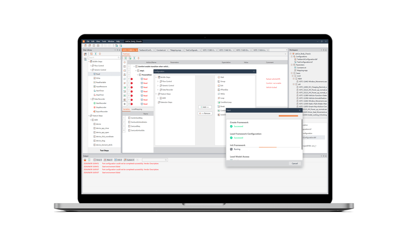VCAR EM, developed by VCARSYSTEM for HIL platforms, is an engineering configuration tool that enables comprehensive HIL project setup. The software facilitates GPIO signal configuration, bus communication configuration for CAN/CAN FD, LIN, Ethernet, board hardware configuration, simulation model import, signal mapping, real-time host multi-task allocation and management, and project compilation. It also supports multi-task distribution management and multi-device daisy-chaining configuration, meeting diverse testing scenario requirements.