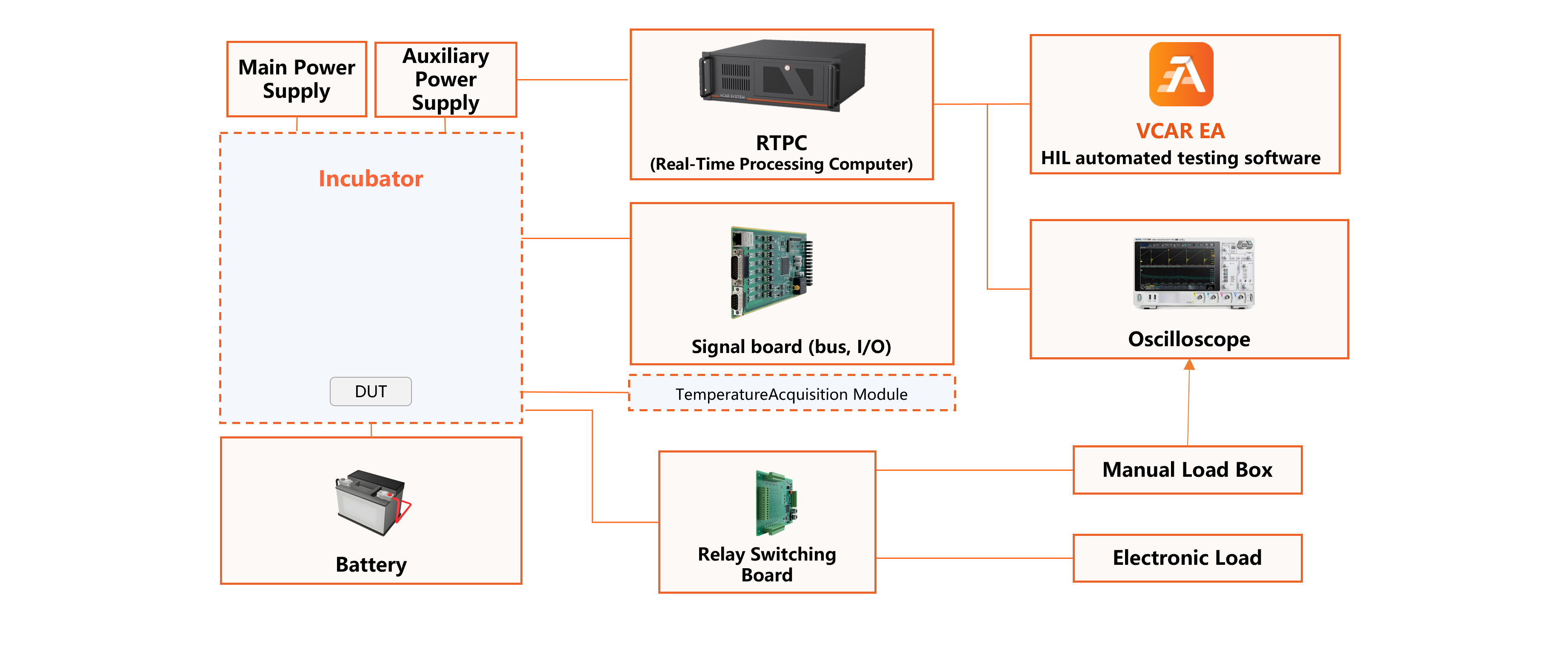 The eFuse HIL testing system solution proposed by VCARSYSTEM is a comprehensive verification process designed to ensure the safety and reliability of electronic fuses in automotive electronic systems. This solution covers everything from basic functional testing to complex simulation tests, including overvoltage and undervoltage simulations, overload conditions, peak and steady-state current tests, as well as performance evaluation under real load conditions. Furthermore, the solution includes electronic fuse wiring protection tests such as I²t, short circuit tests, loop switching time tests, and the verification of distribution accuracy and real-time performance, ensuring that the eFuse responds swiftly and accurately under various extreme conditions.