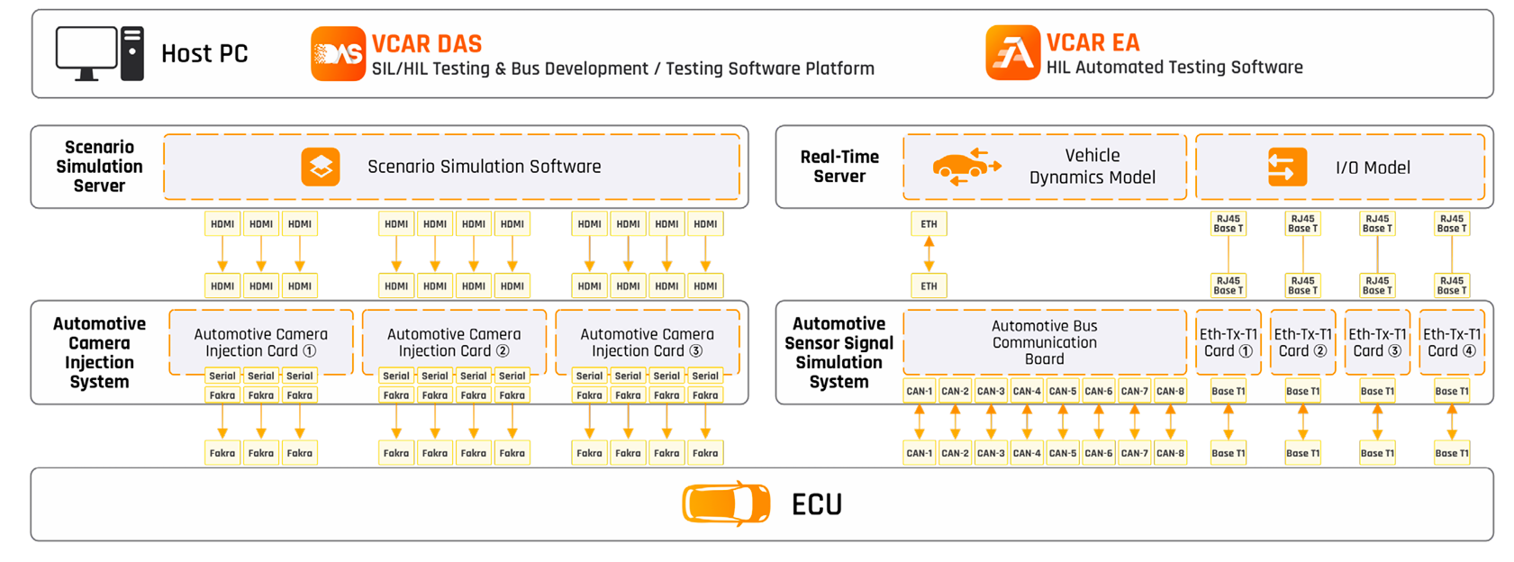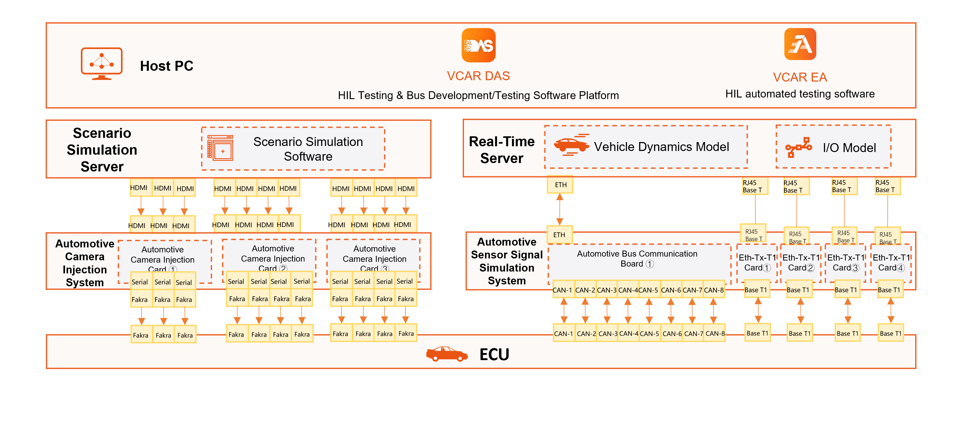 VCARSYSTEM offers Hardware-in-the-Loop (HIL) testing solutions that cover the entire scope of automotive electronics, including modules for new energy powertrain systems (BMS/VCU/MCU), automotive driving systems (ACC/LKA/AEB, etc.), chassis electronic control systems (EPS/ESP/SBW/EPB/EHB/EMB), traditional powertrain systems (EMS/TCU), as well as body electronics and intelligent cockpits. It provides comprehensive HIL testing services to help customers accelerate product launch timelines.